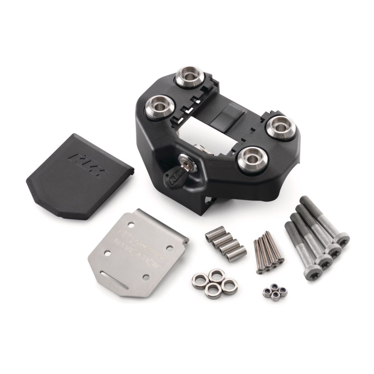 Easy installation using dampened mounts on any original KTM handlebar clamp. Offers the option to install a power outlet and securely lock the GPS unit and mount to prevent theft. For complete security, you will also need one of the PowerParts GPS mounts.
