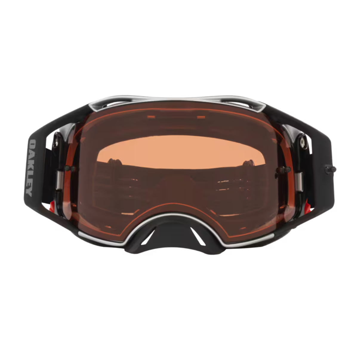 Oakley Sunglasses Airbrake Mx Goggles Tuff Blocks Black Gunmetal Strap Paired With A Prizm Mx Bronze Lens.